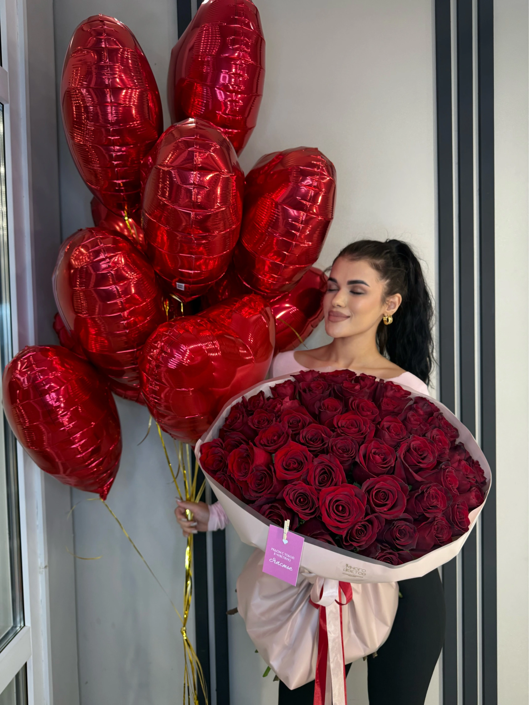 Комбо Розы эквадор и шары сердце