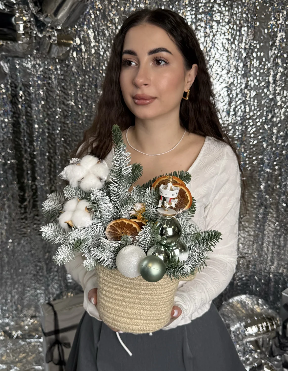 Каждая композиция собрана индивидуально, если вдруг композиция будет недоступна в будущем точно такой же, как на фото, наш менеджер предупредит Вас заранее (так как ёлочным игрушкам свойственно заканчиваться, но мы обязательно подберём для вас прекрасные игрушки для вашей композиции)