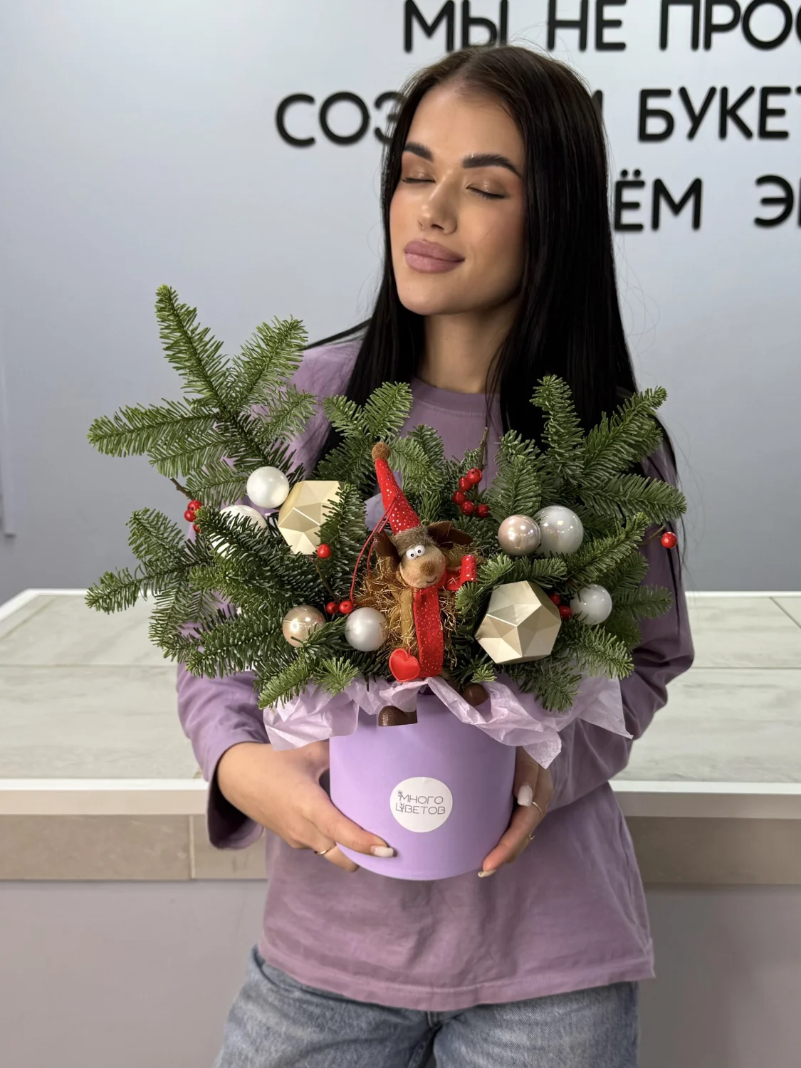 Каждая композиция собрана индивидуально, если вдруг композиция будет недоступна в будущем точно такой же, как на фото, наш менеджер предупредит Вас заранее (так как ёлочным игрушкам свойственно заканчиваться, но мы обязательно подберём для вас прекрасные игрушки для вашей композиции)